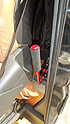 Naturalną sprawą jest, aby wchodząc do tak wysokiego samochodu, chwycić się czegoś i pomóc sobie ręką wciągając się do góry. Jeden uchwyt już zainstalowałem po prawej stronie, w ramie drzwi przesuwanych. Ale to za mało. Szafa kuchenna jest dość solidną konstrukcją ze sklejki 10mm grubości, ale na pewno poddała by się po paru latach codziennego szarpania za jej krawędź przy wchodzeniu. Wykombinowałem więc odpowiednią rurę, uchwyt. Umocowany do podłogi i do górnej ramy drzwi przesuwanych. Takie rozwiązanie znacząco wzmocniło samą szafę kuchenną, ale także doskonale się sprawdza jako pomoc do wchodzenia do samochodu. Z trzeciej strony, po otwarciu przegrody do kabiny kierowcy i obróceniu fotela pasażera, daje dobry punkt wsparcia dla wstawania i siadania na tymże fotelu.